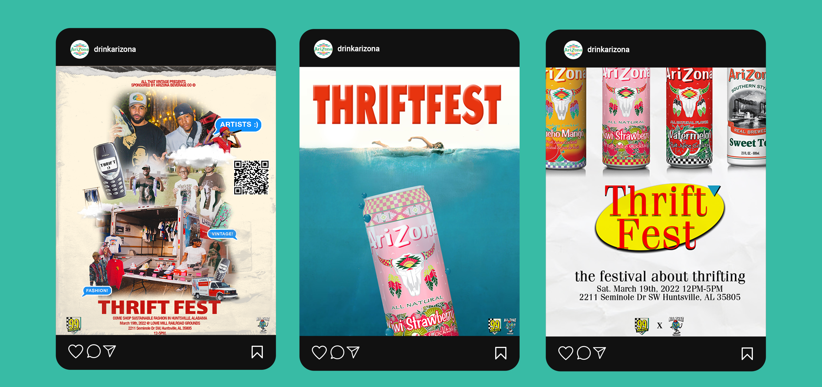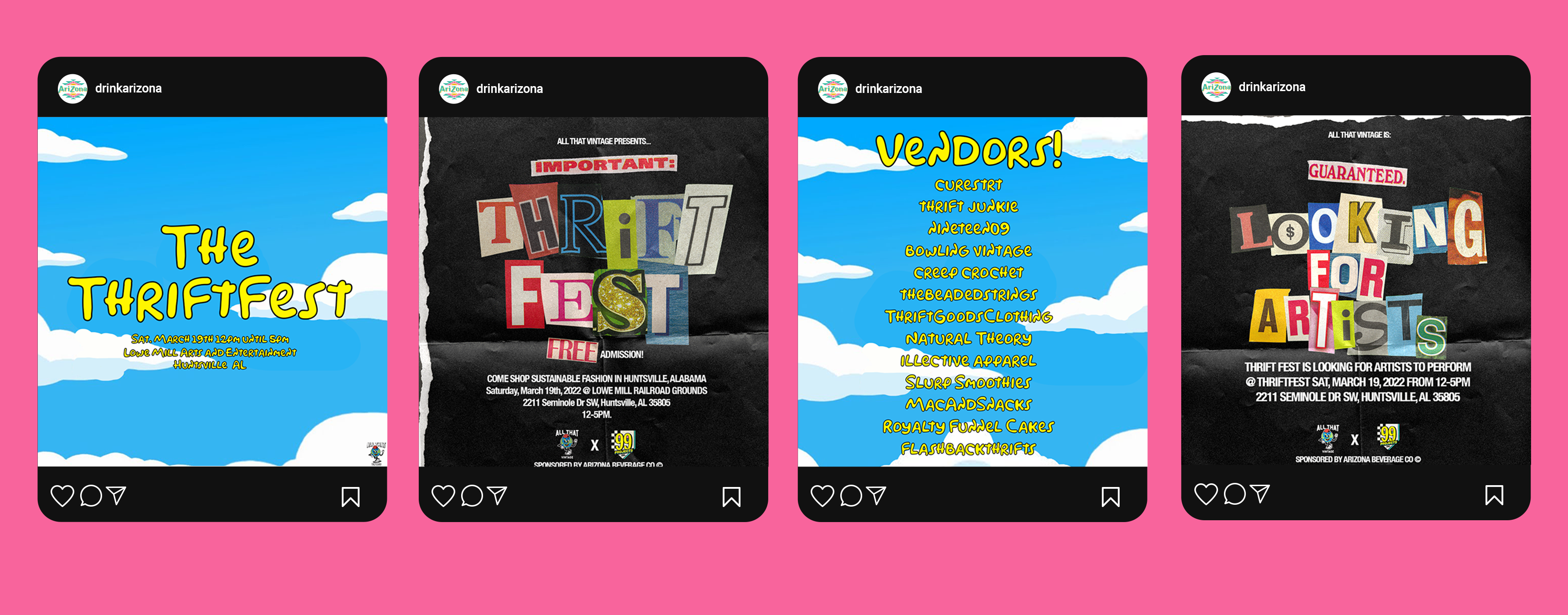 Four friends banded together to create a festival for sustainable fashion(i’m one of the four). Our first ThriftFest landed an official partnership with AriZona Iced Tea, calling for an extensive campaign. From OLVs, to collab short form content, to static social posts, a mini-documentary on AriZona’s YouTube, and everything in between. This is the rollout for ThriftFest.